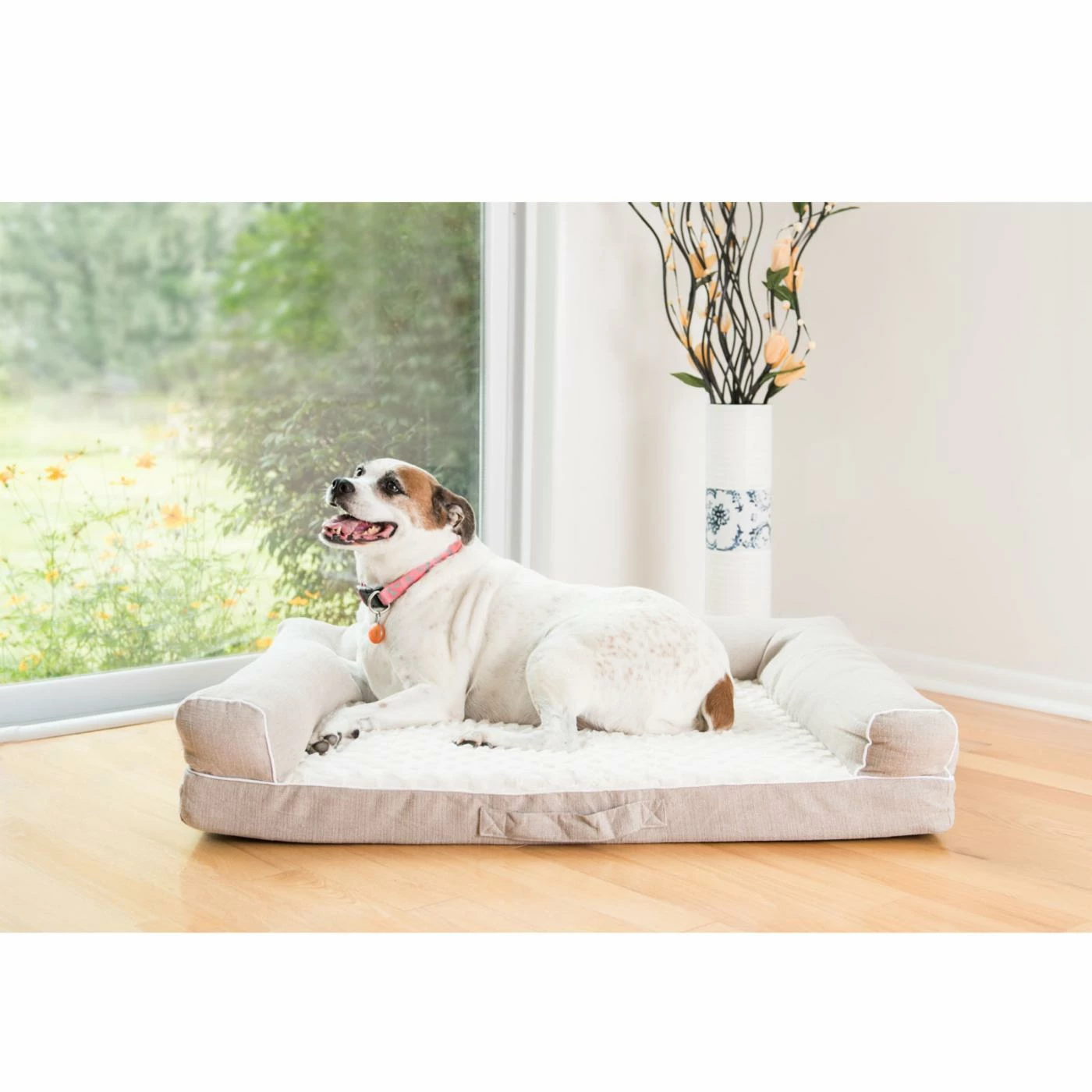 Textured beige fabric, white piping, and memory foam cushioning make the Armarkat Thick Memory Foam Pet Bed stack up to one cozy bed. Side and back bolsters give your pet a good resting spot for their head. This pet bed is conveniently machine washable.