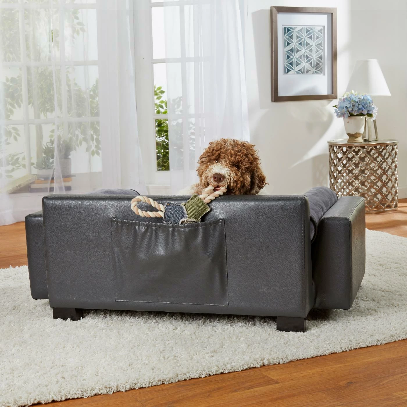 - Storage pocket for toys and bones