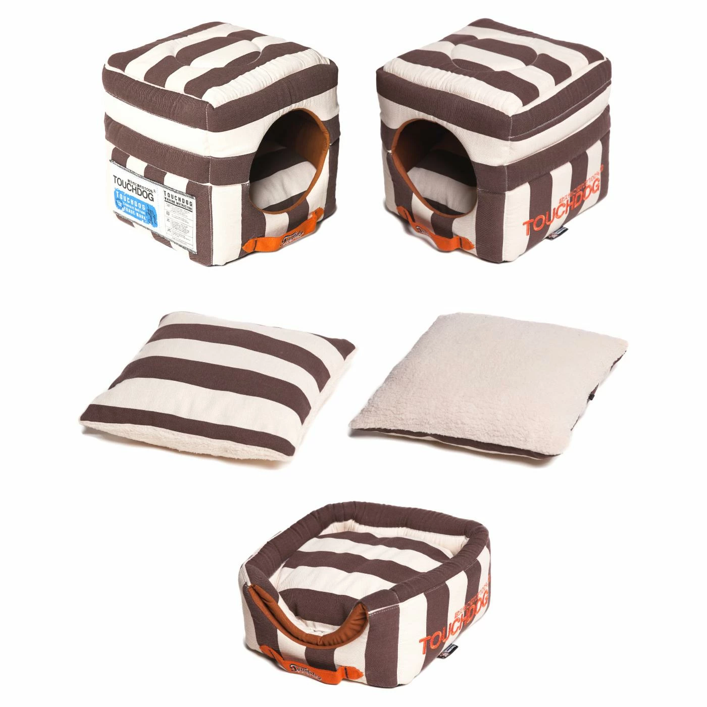 From striped design to embroidered accents, the Pet Life Touchdog Polo-Striped Convertible and Reversible Squared 2-in-1 Collapsible Dog House Bed is built for style. A removable polyester Sherpa cushion and plush nylon and cotton exterior make is as comfy as it is handsome. Your choice of stripe color!