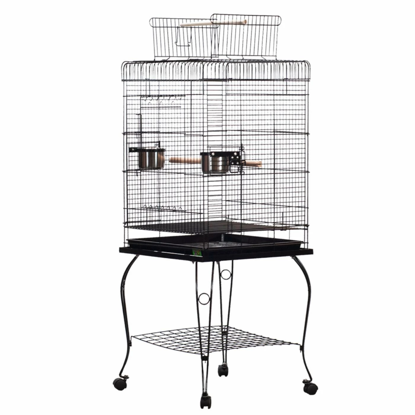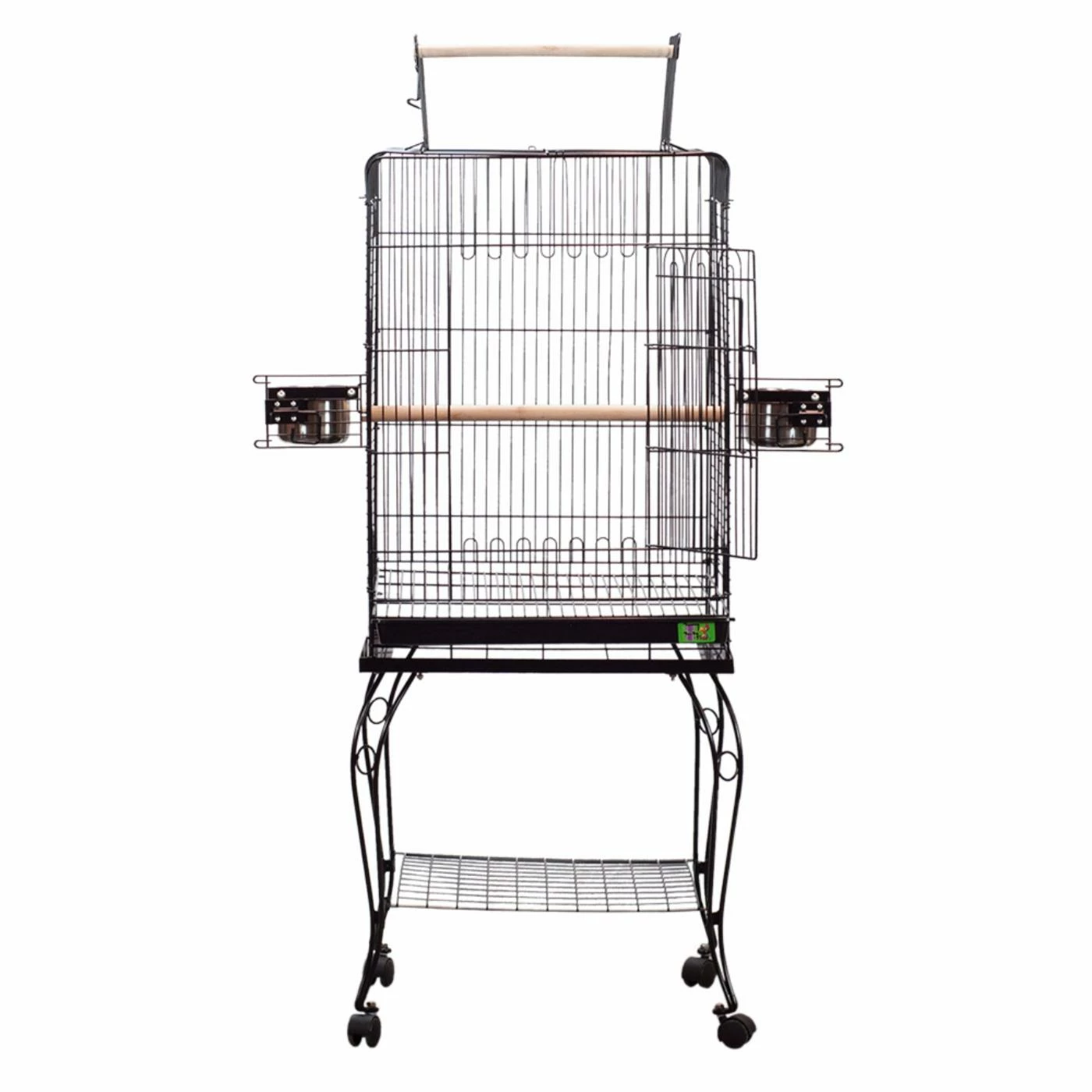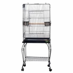 Provide a safe and spacious home for larger birds with the Opening Playtop Bird Cage. This cage has a top that opens up with topside perches for out-of-cage playtime. The space between bars is .5 – .75 inches, and the cage’s interior height measures 30 inches. It’s loaded with features like a large front door for easy access, two swing-out feeder doors, and dual interior perches. It also has a single perch for your feathered friend. Smooth rolling casters make transportation a breeze, and the entire cage may be broken down and folded up for easy storage when not in use. It’s finished in a non-toxic powder coat and comes in multiple color options.