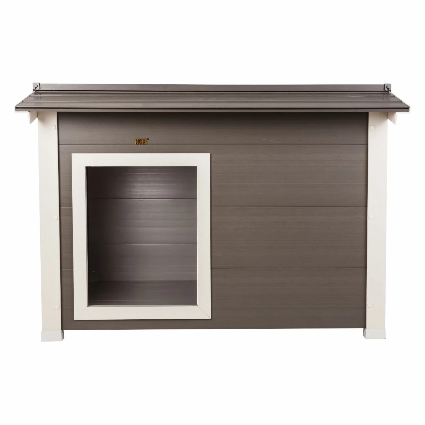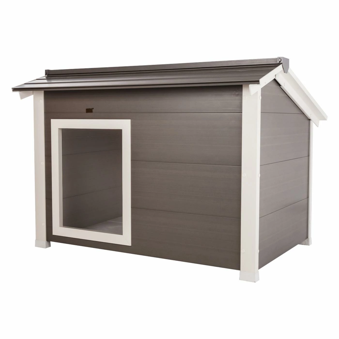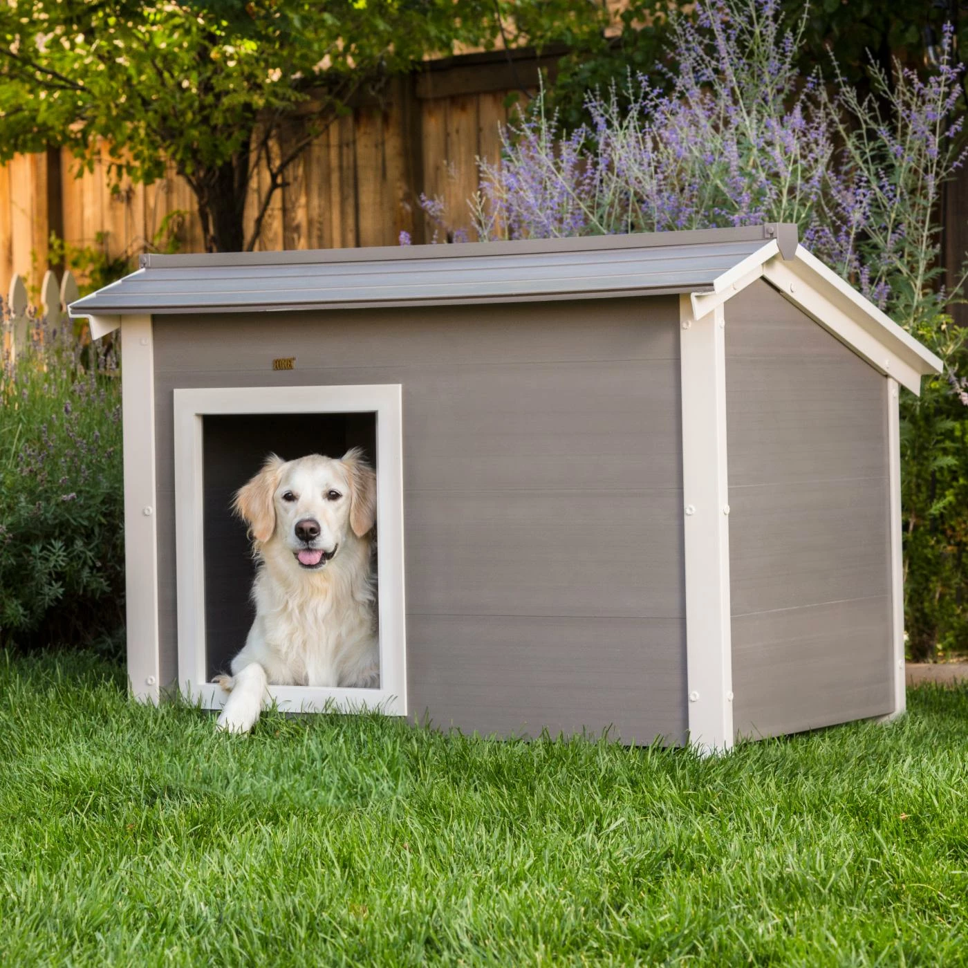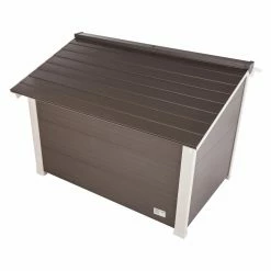 Your dog will feel right at home in the New Age Pet ThermoCore Canine Cabin. This spacious dog house features a door off to one side, making it ideal for large dogs who like to get away from the entrance while they sleep. The ecoFLEX® siding is insulated with ThermoCore, which pairs with the raised floor to create a temperature-regulated environment that will keep your dog comfortable in most weather. This easy-to-assemble dog house can also be repainted to coordinate with your outdoor décor, making it a perfect choice for any backyard.