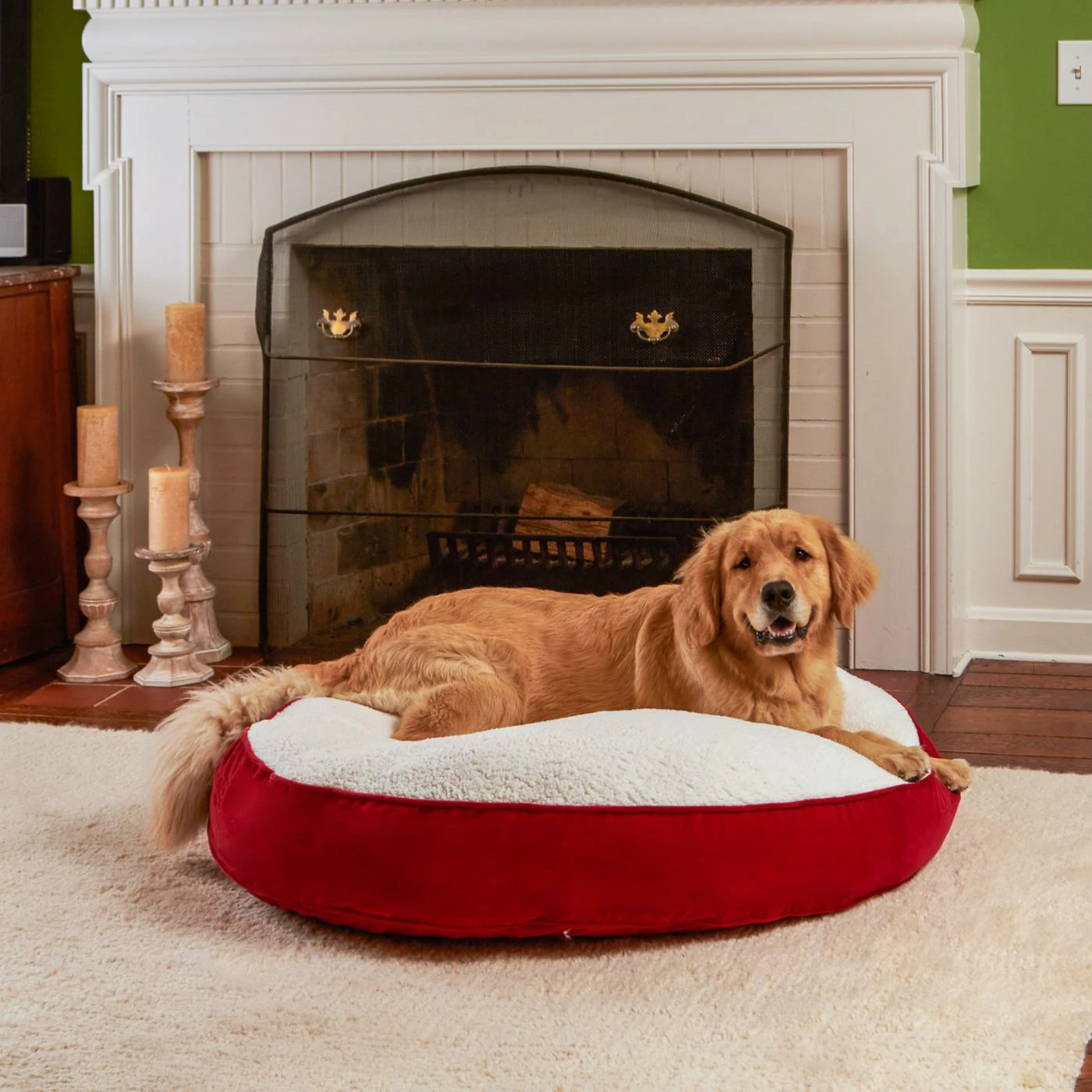 The Happy Hounds Scout Deluxe Round Dog Bed will make your favorite furry friend very cozy. It has durable, double-sewn boxed edges with decorative cording, and its reversible design allows for longer use. Filled with 100% post-consumer recycled plastic poly-fiber fill, the heavy duty microfiber fabric reverses to a luxurious soft Sherpa panel. The removable and machine-washable cover comes with a hefty hidden zipper to prevent chewing. Finished in the USA. Cushion dimensions are +/- 2 inches. Please note product will arrive in a slightly compressed state; please allow a few days for product to expand to final size listed in description.