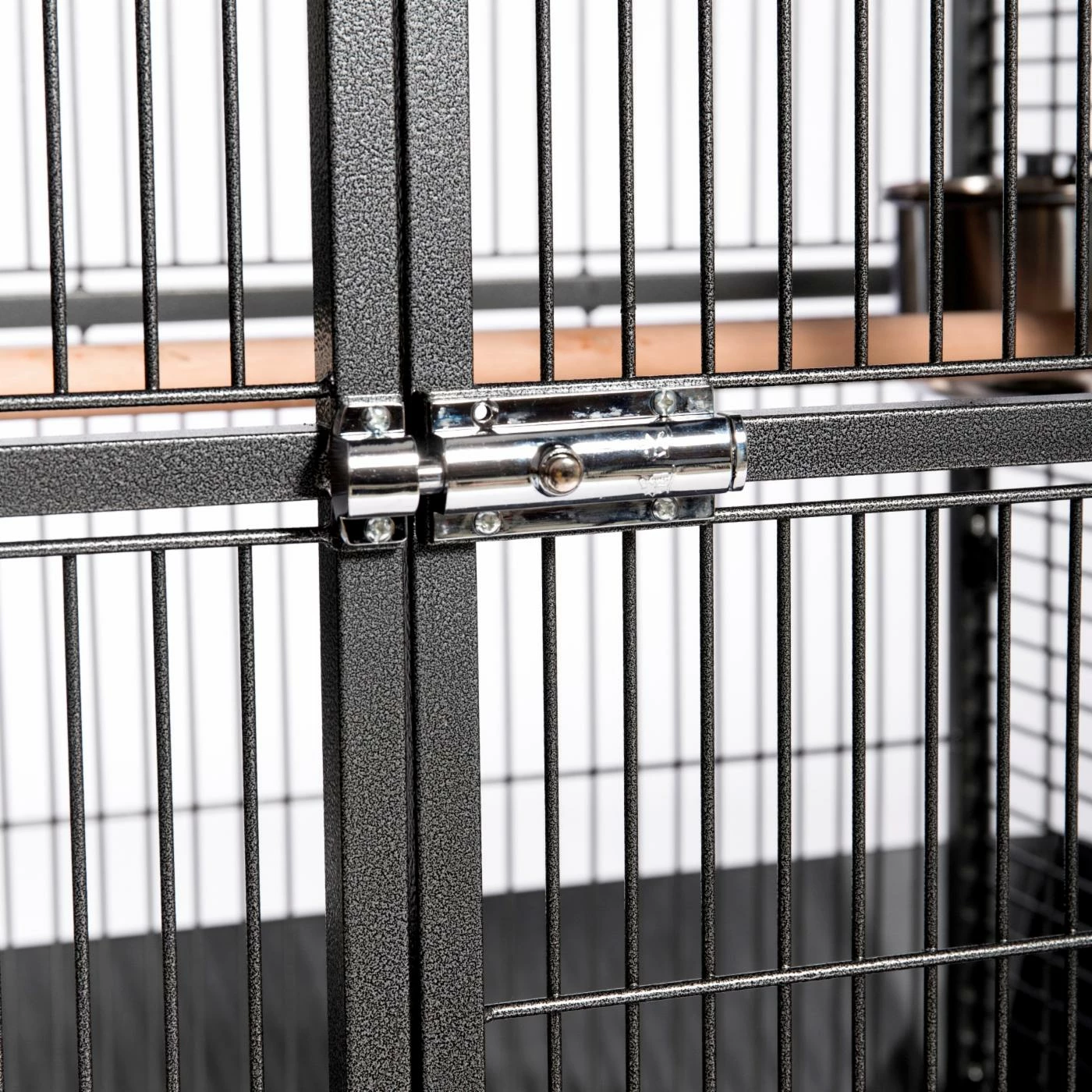 - 2 stainless steel cups and 1 large wooden perch