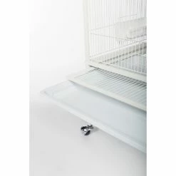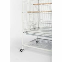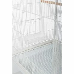 Give your canaries, parakeets, or finches more room to stretch their wings by upgrading to the Prevue Pet Products Wrought Iron Flight Cage with Stand. Both owner- and bird-friendly, this wrought iron cage will accommodate multiple birds and features two large, hinged front doors as well as six small side doors for easy access. Cleaning is easy, too, with the pull-out grille and debris tray. Store birdseed and supplies on the integrated bottom shelf. The cage also comes with three wood perches, four double cups, and rolling casters. Assembly is simple.