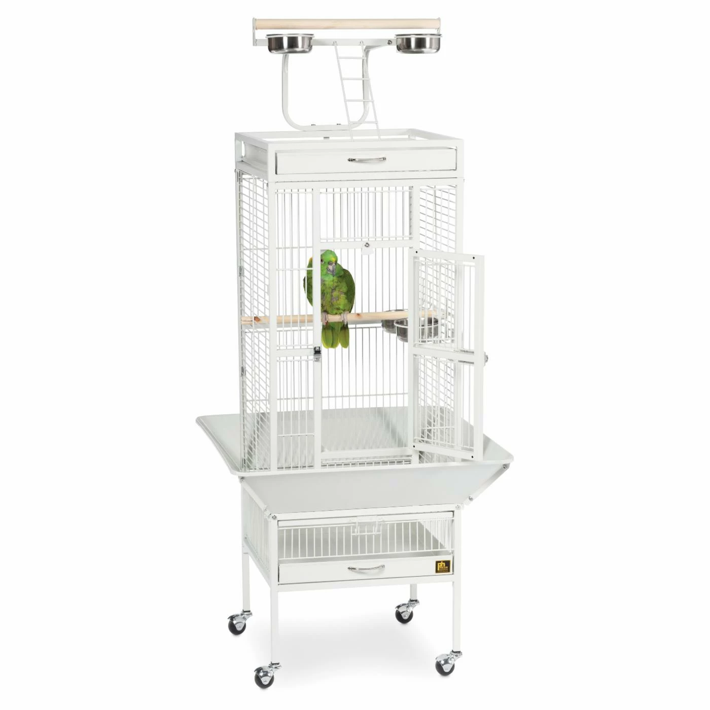 With a large interior, the Prevue Pet Products Select Wrought Iron CockatielΒ Cage will be a comfortable living space for your cockatiel or small parrot. Available in several finishes, this cage features an all-around seed guard for catching all your bird’s throw-aways. A removable drawer makes cleaning the cage easy and the base features four heavy-duty casters, making it easy to move when you need to. There are four stainless steel feeder cups;Β two for the interior and two for the top. A perch is included for your bird to enjoy inside the cage while a play perch and ladder will keep him busy up on top.