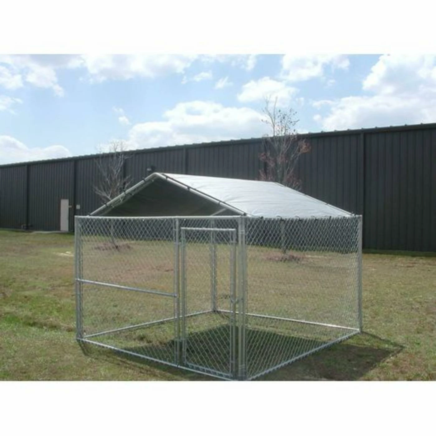 Protect your pets from the elements with the 10 ft. 8 in. x 9 ft. 7 in. Low Pitch Kennel Cover. This cover is crafted from durable gray polyethylene tarp and 20 gauge gray powder-coated steel piping. For added coverage, it also features UV protection. The cover clamps down over an existing 10 x 10 foot kennel, and features easy, no-tool installation. Measures 10 ft. 8 in. L x 9 ft. 7 in. W.