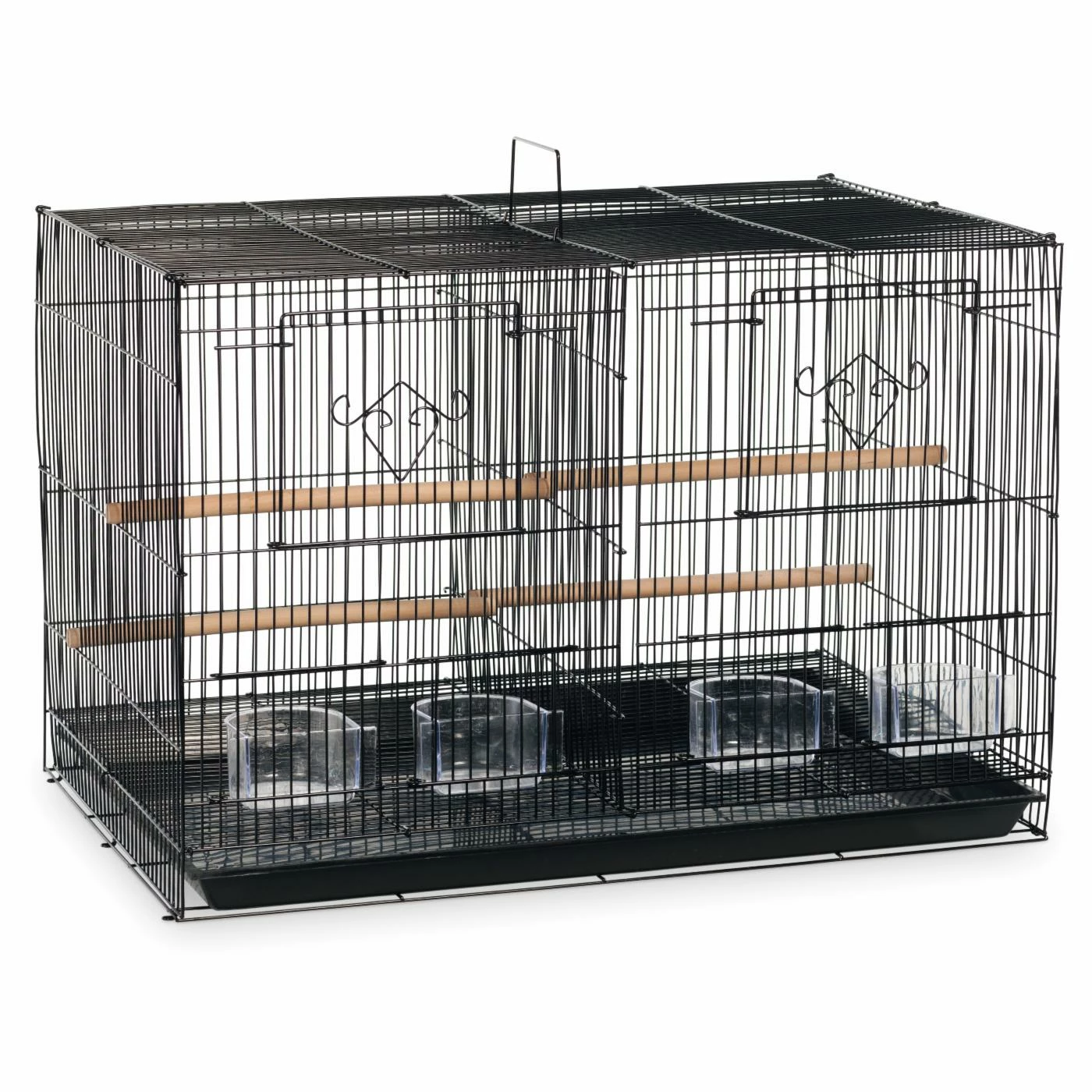A little bird told us that fitness was a big deal, so we’ve been looking into the Prevue Pet Products Divided Flight Cage – Black. This roomy divided cage helps encourage exercise for Finches or other small birds by dividing the space so they have to get down and stretch their legs every now and again. Each side is outfitted with an opening door, feeder cup and a pair of perches. A removable tray at the bottom makes cleaning easy, and the design is even stackable to allow for more cages.